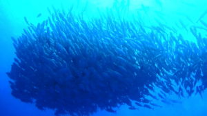 ロウニンアジの群れ、巨大イソマグロなども