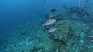 海底を埋め尽くすようにノコギリダイやアカヒメジの