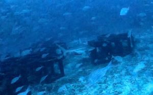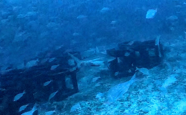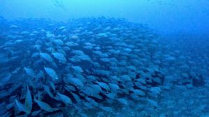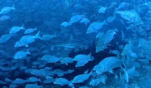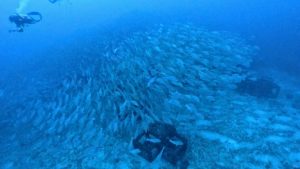 体長が1.3mはあるロウニンアジの群れが接近して来ました。