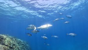 ダイビング終盤、下げ潮に乗りながら沖合をドリフトしていると