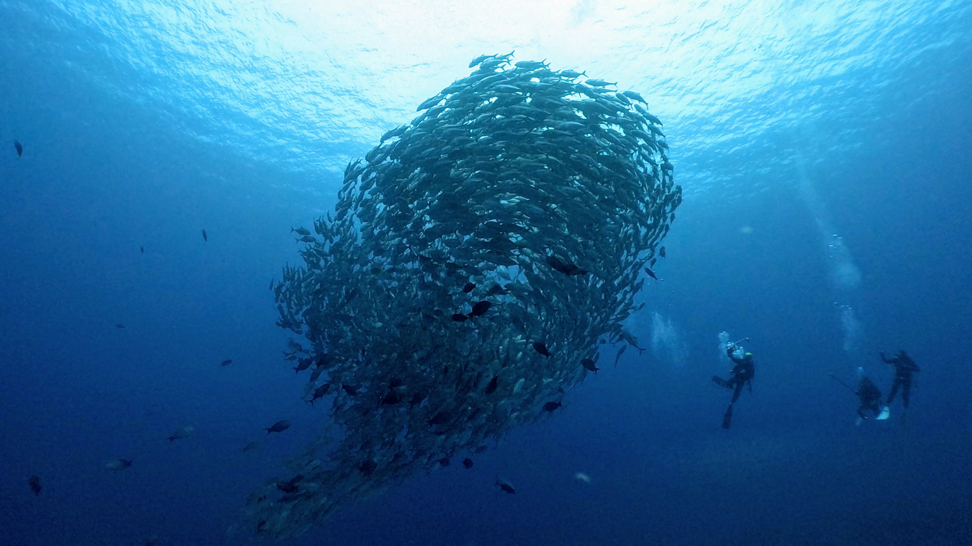 しばらくするとギンガメは渦を巻きだし中層で