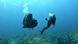 他のダイバーがいない所で筆ん崎の主のBIGナポレオンと出会いました。