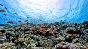 ドロップオフの浅場ではアカネハナゴイとキンギョハナダイと