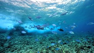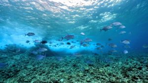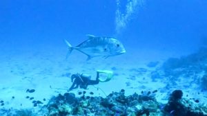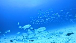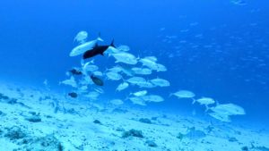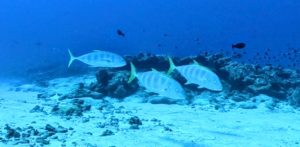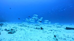 白砂が美しい沖合へ出ると、4尾のホシカイワリが