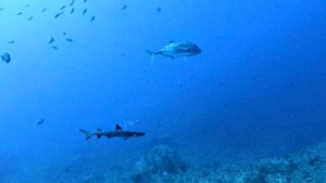 その後ろをホワイトチップシャークが追いかけていました。