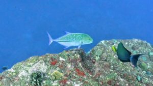 カスミアジはグルクンを追って急ぎ足でドロップオフ沿いを