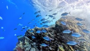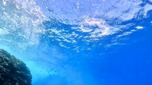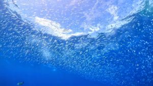 水面近くではキビナゴの大群がまるで雲のよう!