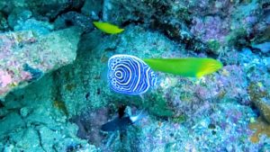 30尾ぐらいのナンヨウハギ幼魚の群れも