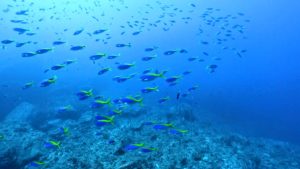 潮流の速い浅場のサンゴ礁ではキンギョハナダイの大群が