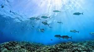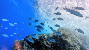 水面近くではキビナゴの大群がまるで雲のよう!