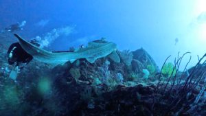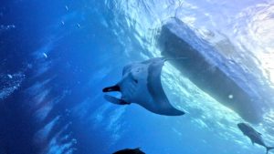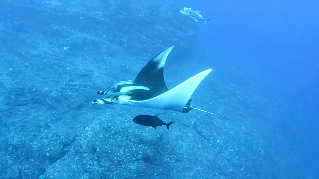 潮上からエントリーして間もなく、ジャイアントマンタを発見!