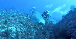 根の北西の海底を見下ろすと何やらでかいサメが・・・