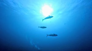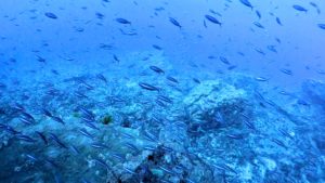 根の北西水深30m付近ではクマザサハナムロの大群が