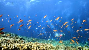 根のトップのサンゴ礁ではキンギョハナダイの大群が