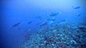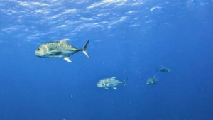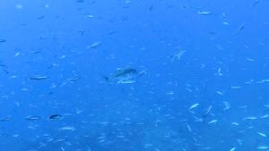 しかしロウニンアジの群れがグルクンの大群にアタックする