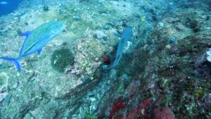 その上ではロウニンアジが暇そうに遊泳していましたよ。