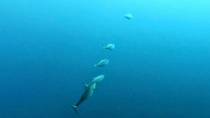 ホワイトチップシャークとカスミアジが一緒に泳いでいましたよ。