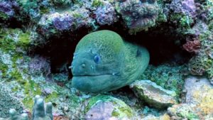 ドクウツボは岩穴から顔を出してこちらを観ていました。