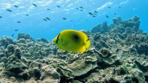 ウミヅキチョウチョウウオは色鮮やかな衣装で